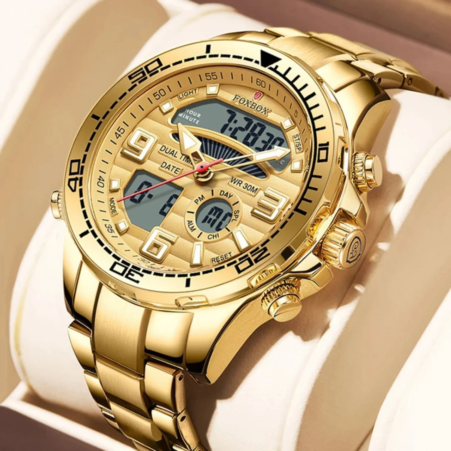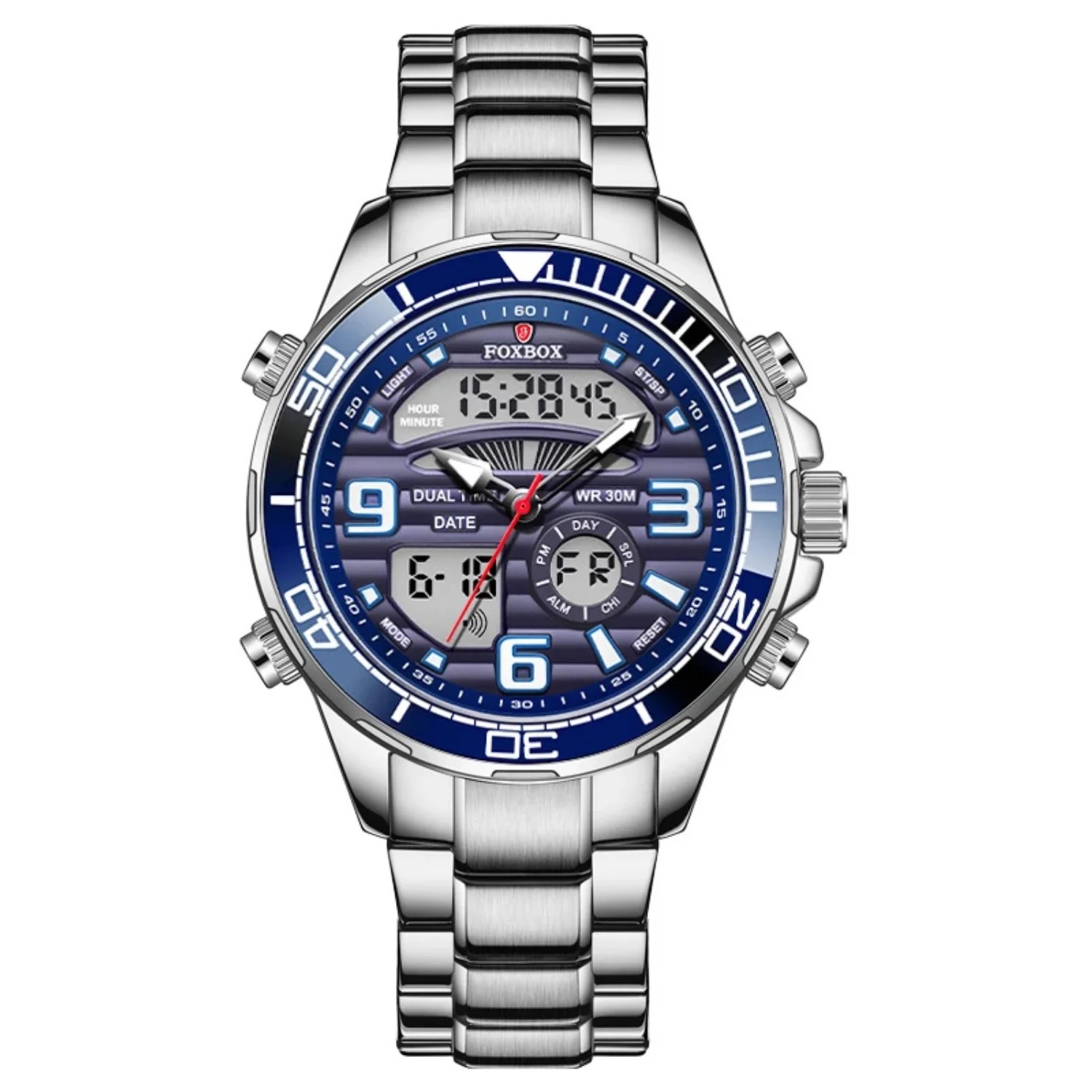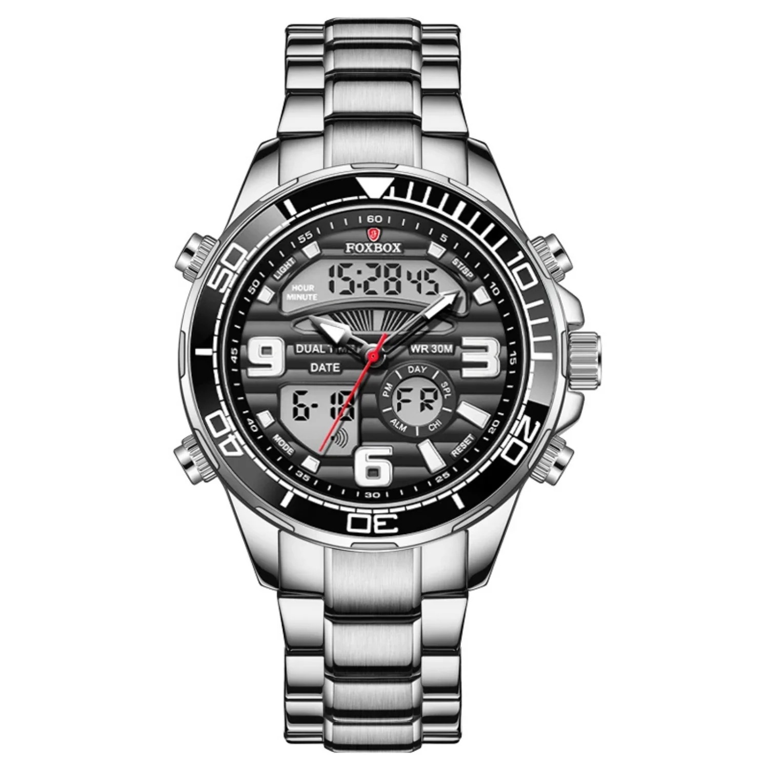 Anadigi Men’s Watch – Stainless Steel Strap, LED Display, Chronograph