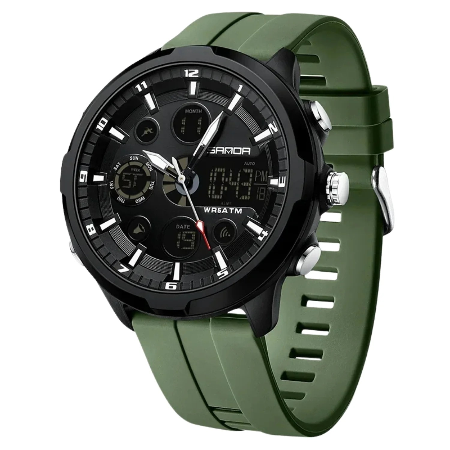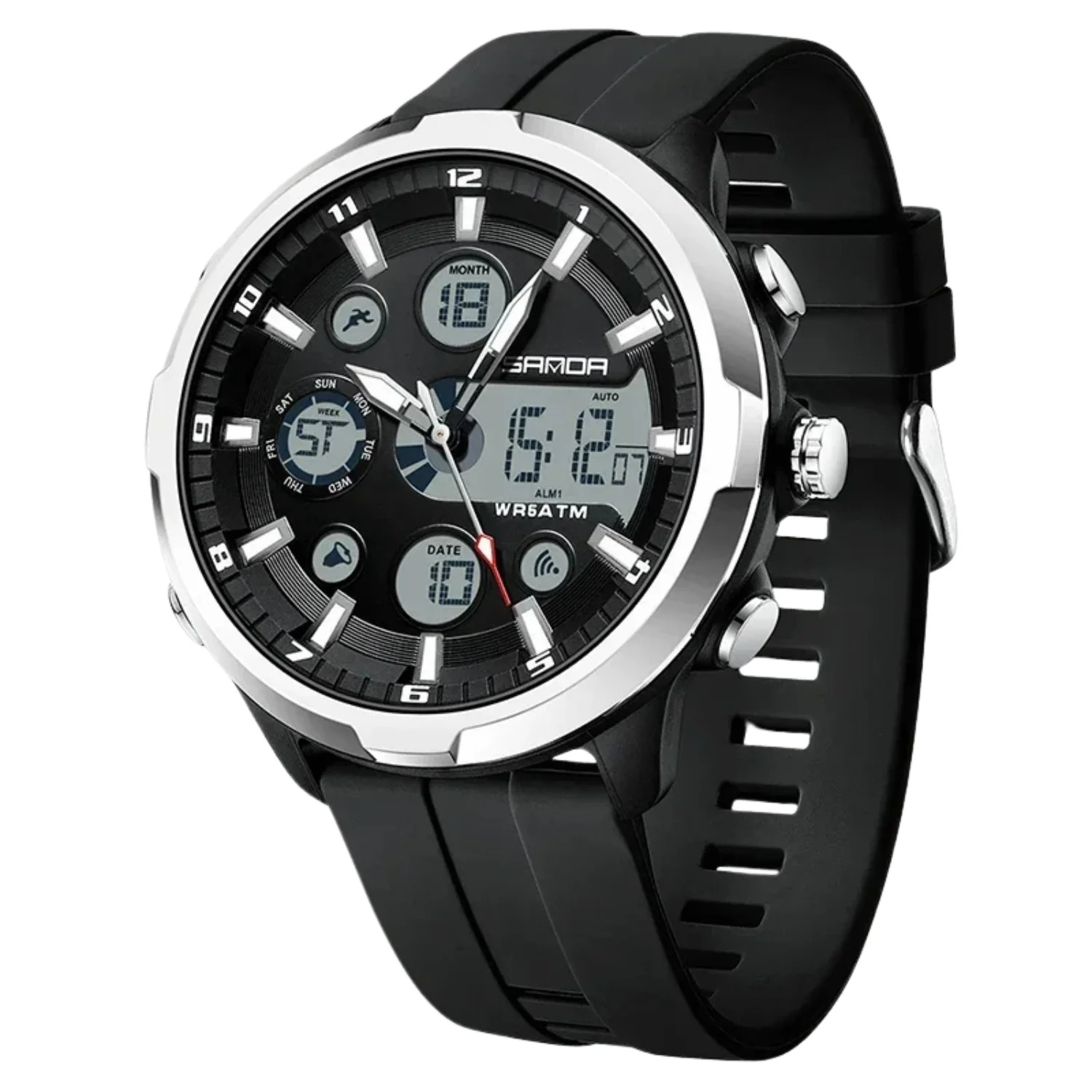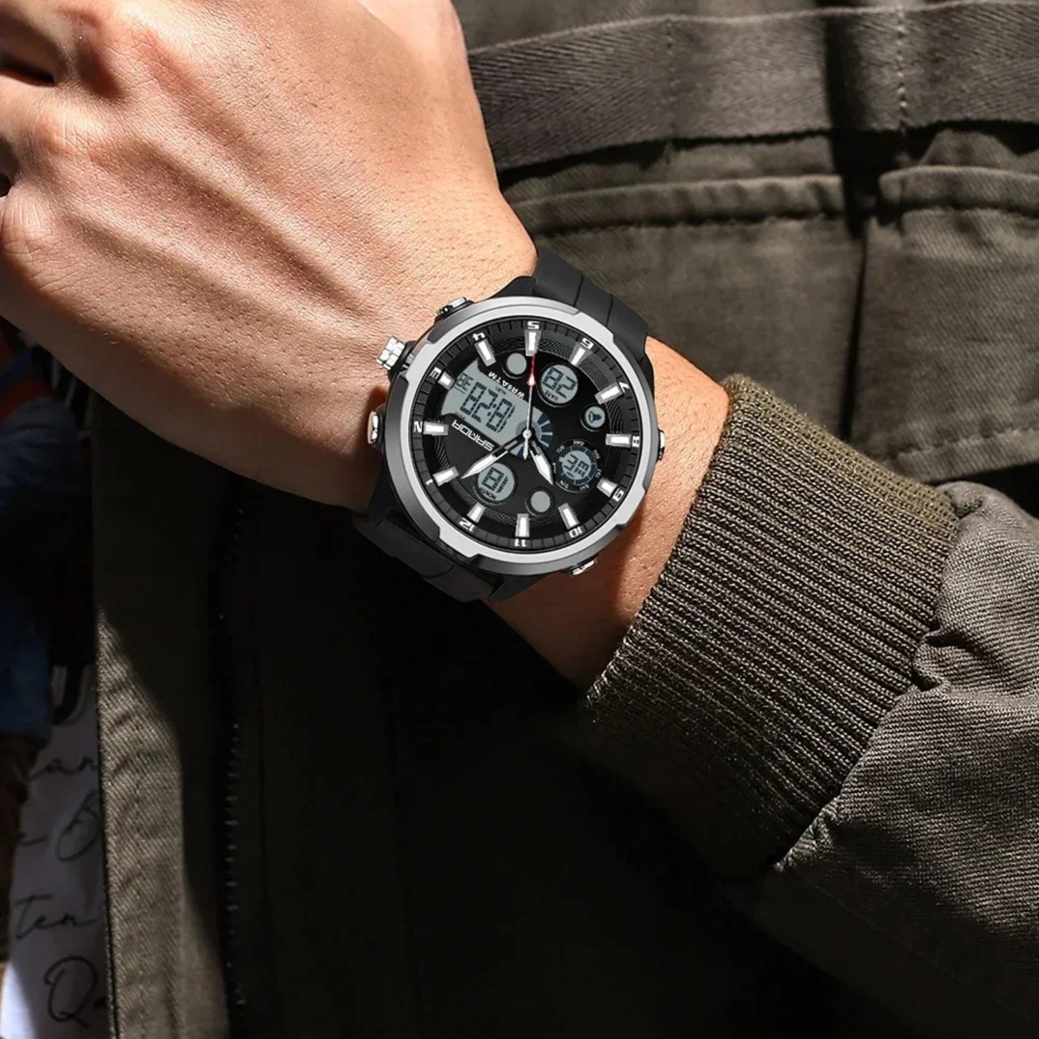 Anadigi Sport Men’s Watch 53mm – Silicone Strap, Acrylic Crystal, Water-Resistant, Analog-Digital Display