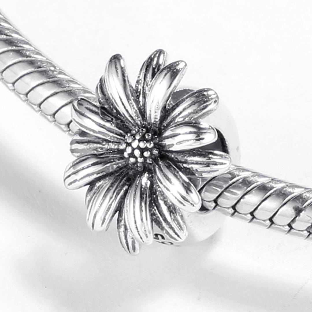 Cheerful Daisy Stopper Charm 925 Sterling Silver