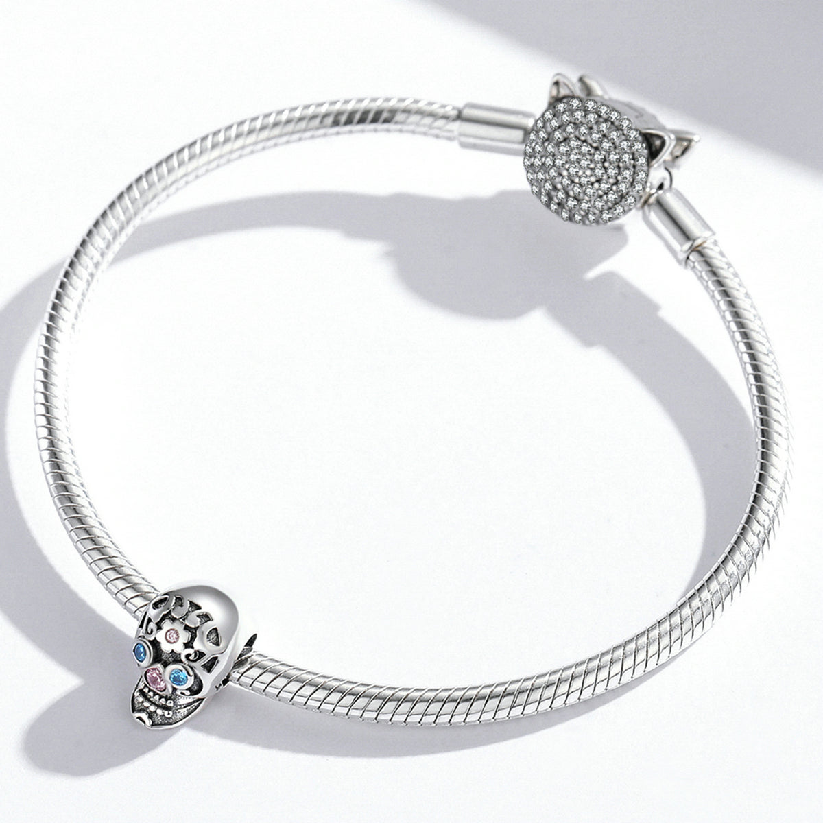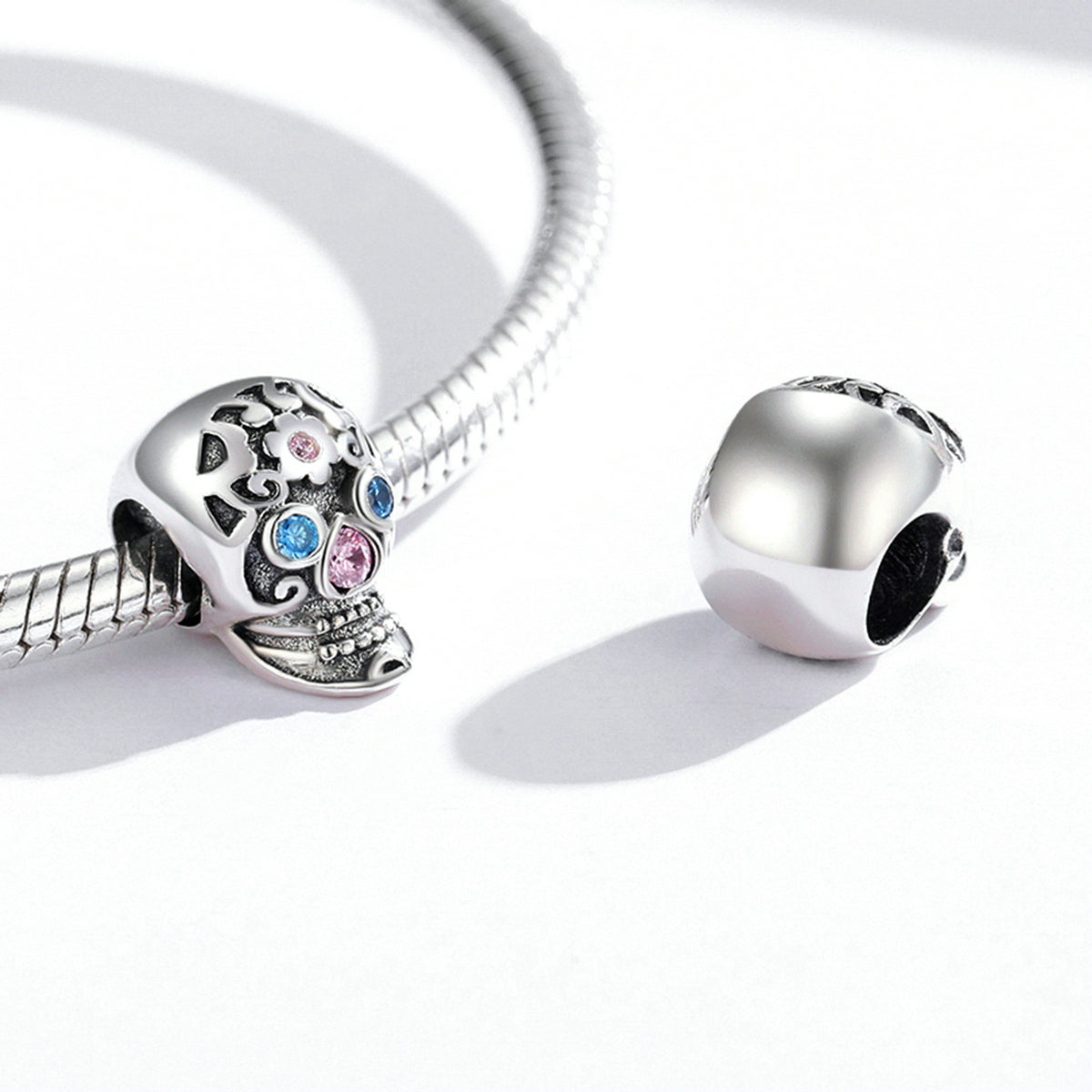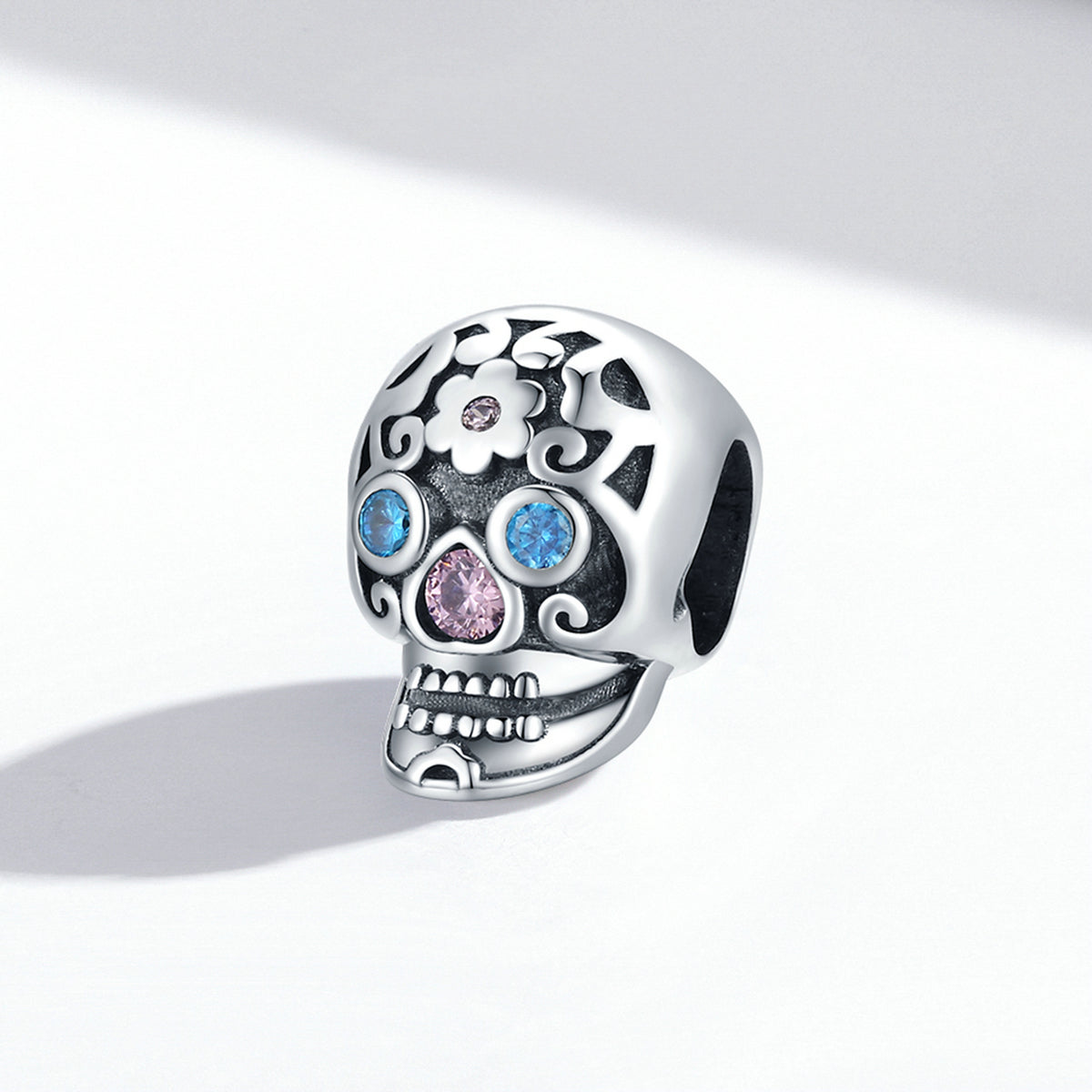 Crystallized Day of the Dead Skull Charm 925 Sterling Silver