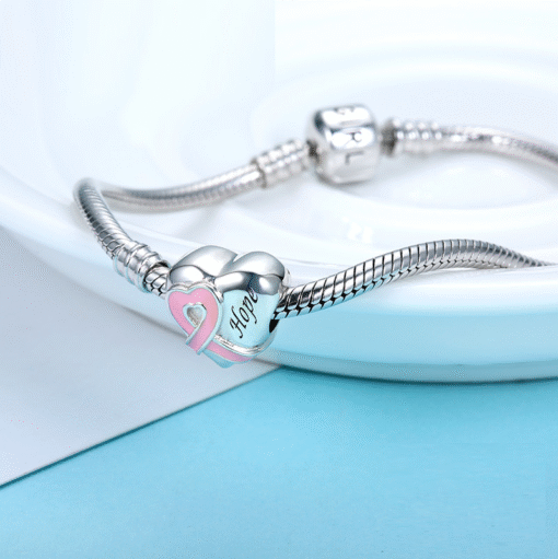 Hope Pink Heart Ribbon Charm 925 Sterling Silver