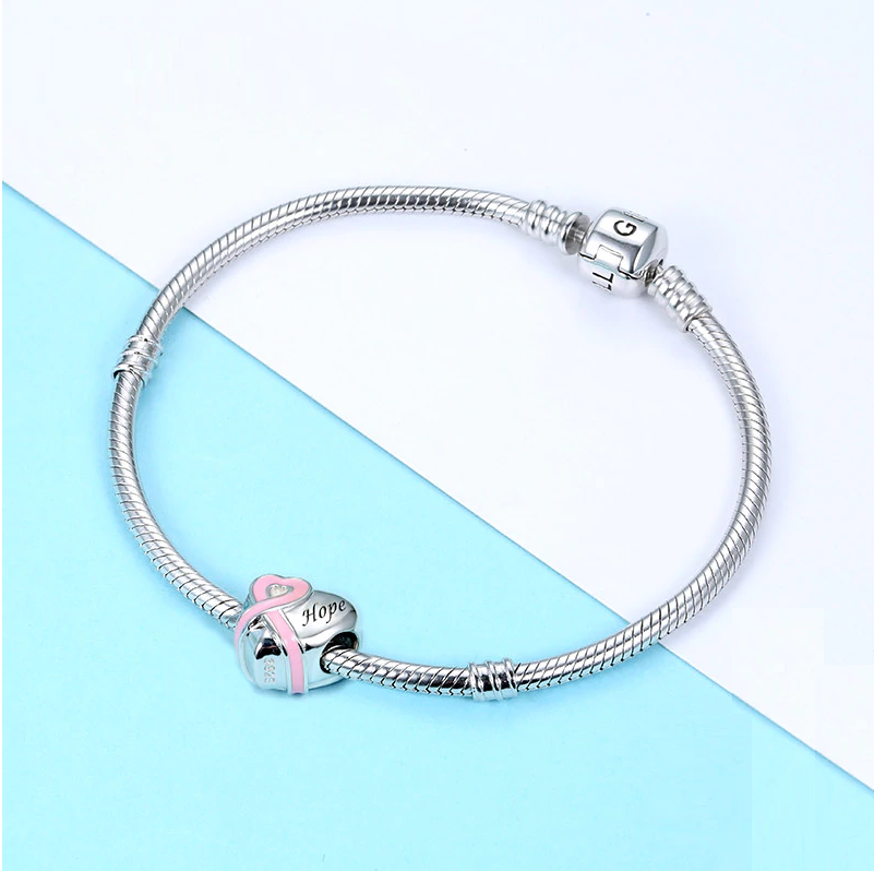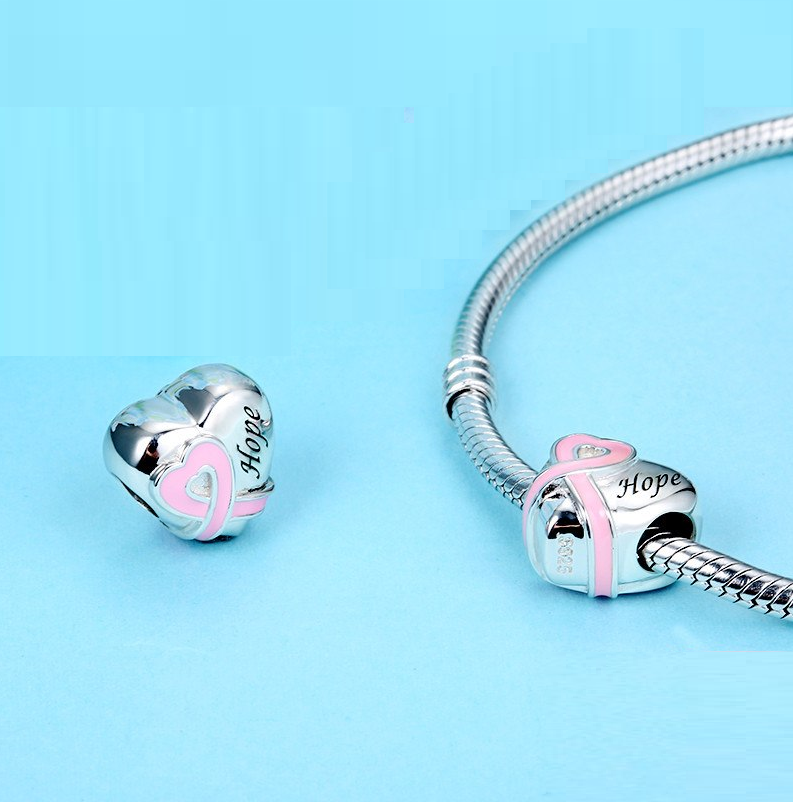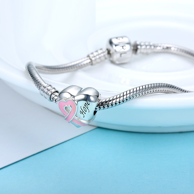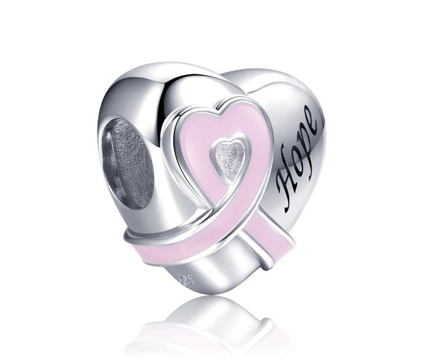 Hope Pink Heart Ribbon Charm 925 Sterling Silver