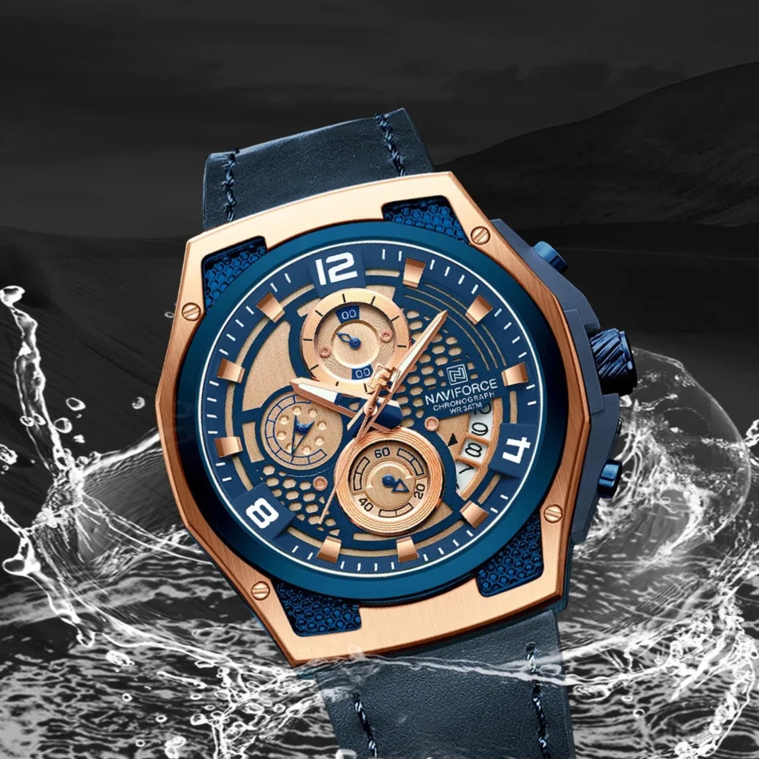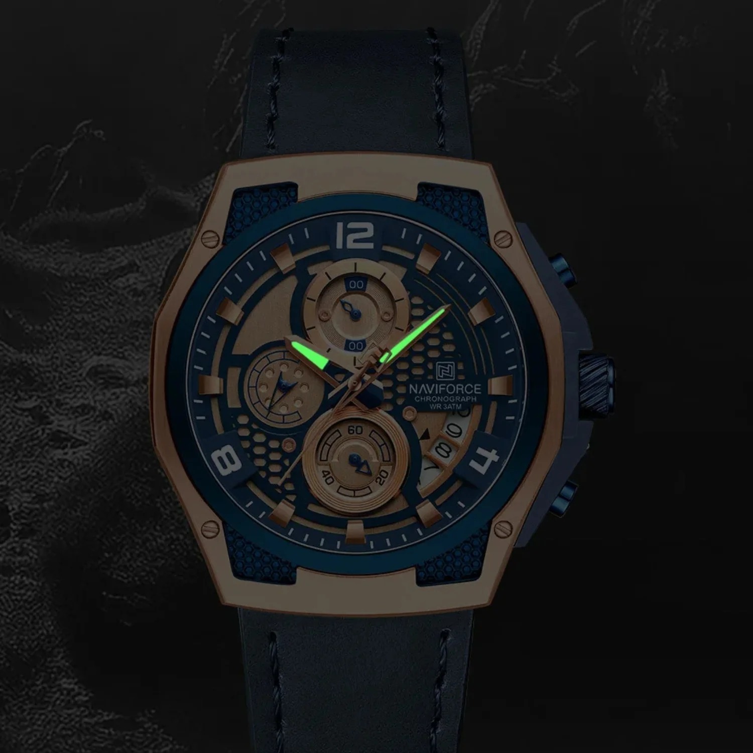 Men’s Analog Watch – Leather Strap, 45mm Hardlex Crystal, LED, Chronograph, Water Resistant