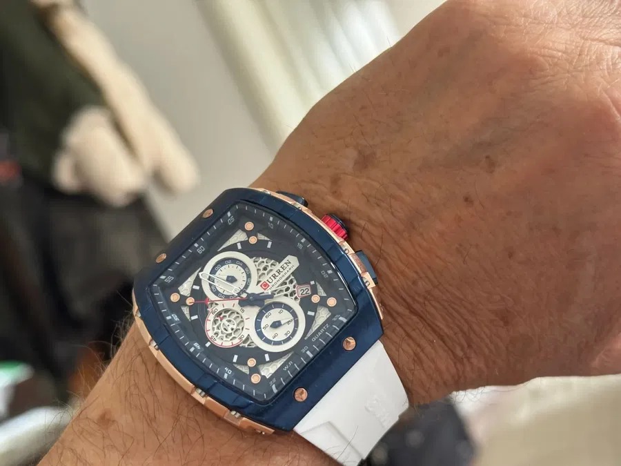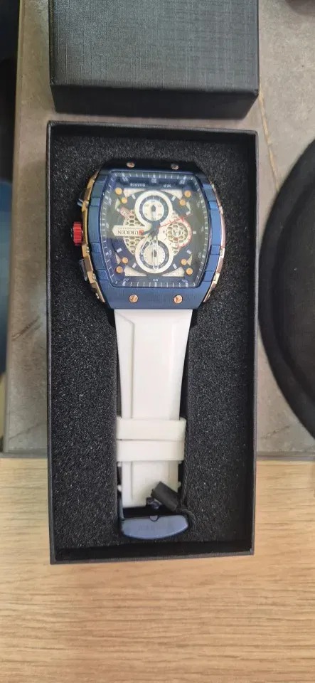 Men’s Analog Watch – Silicone Strap, 47mm Rectangular Hardlex Crystal, Chronograph and Automatic Date