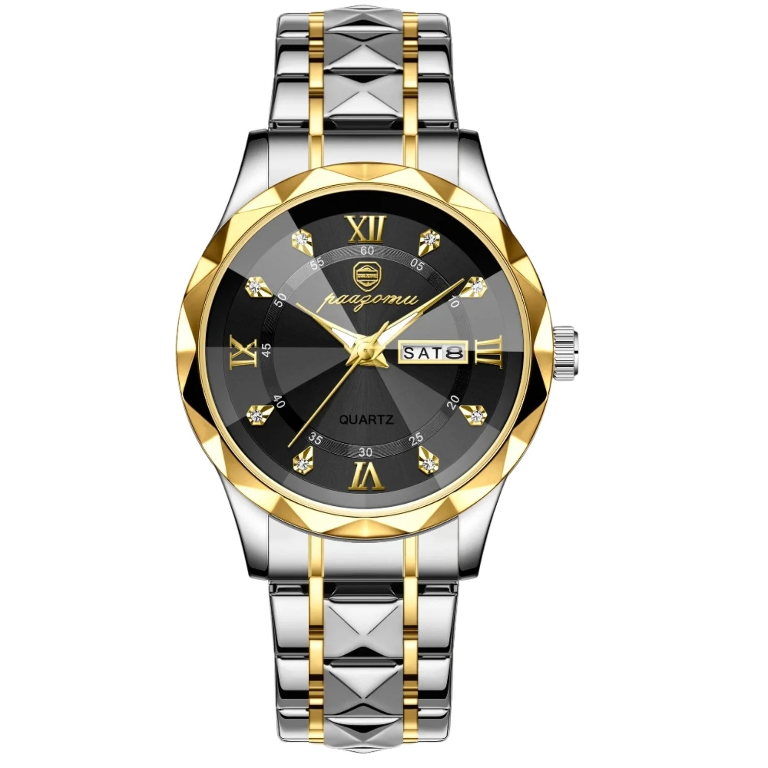 Men's Analog Watch – Stainless Steel Strap, Stopwatch, Water Resistant