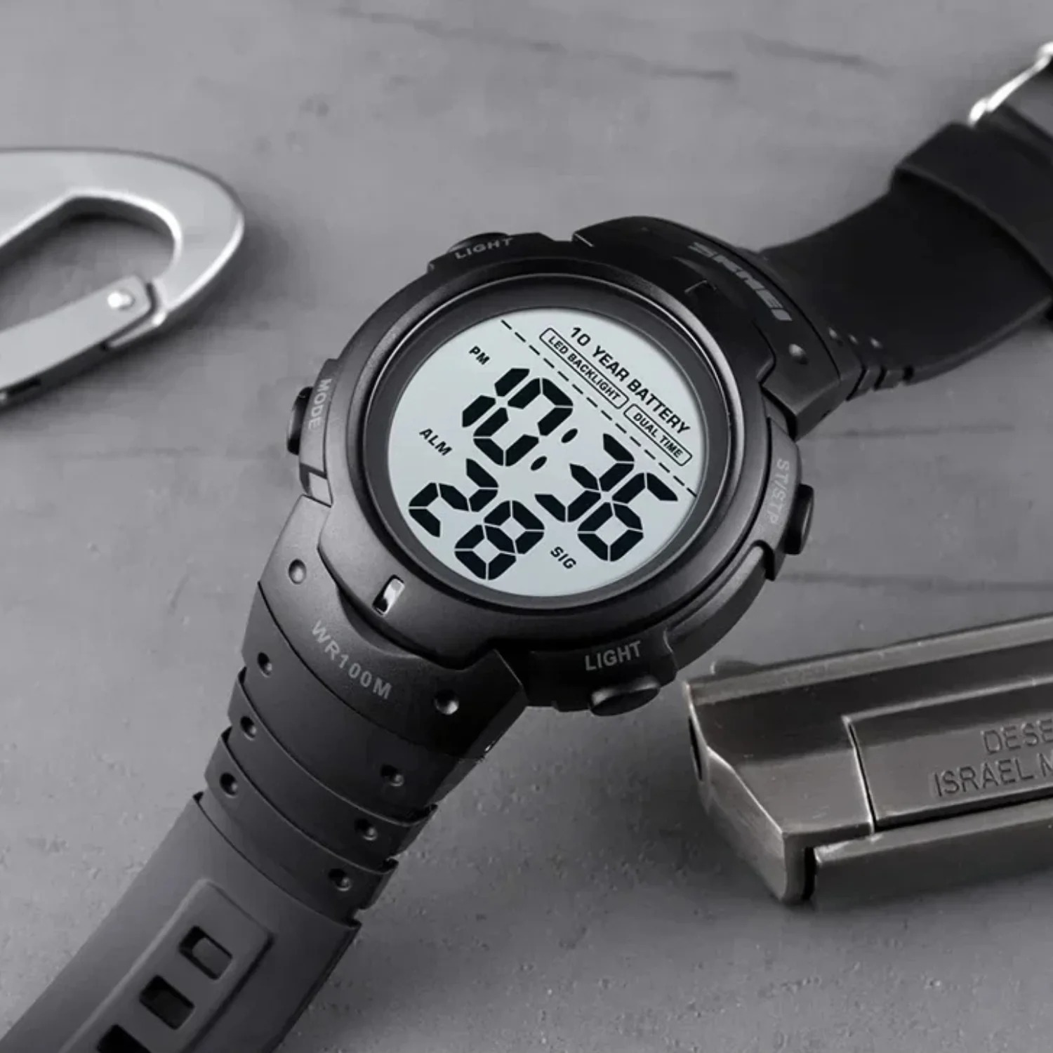 Men’s Digital Watch – 47mm Display, LED Screen with Night Light, Chronograph, Alarm, Water Resistant