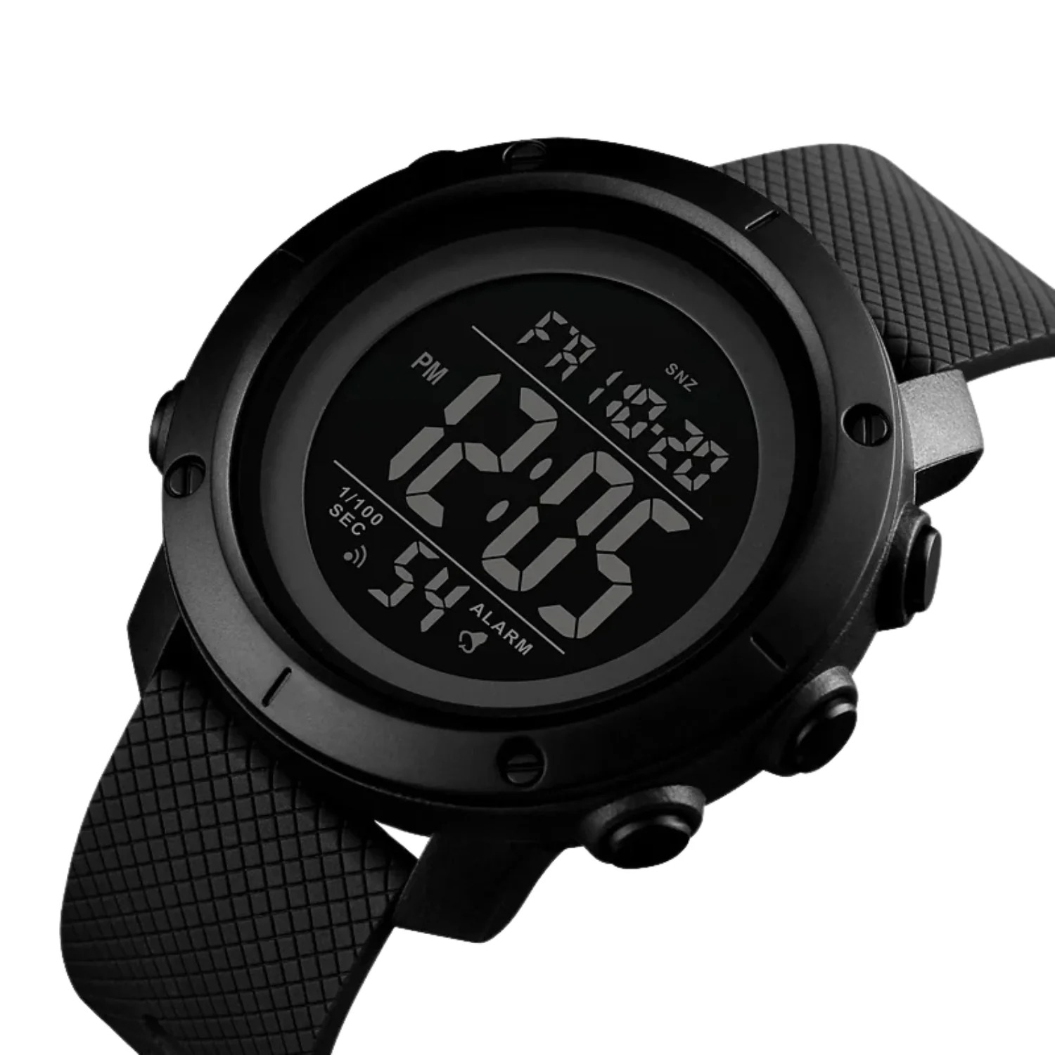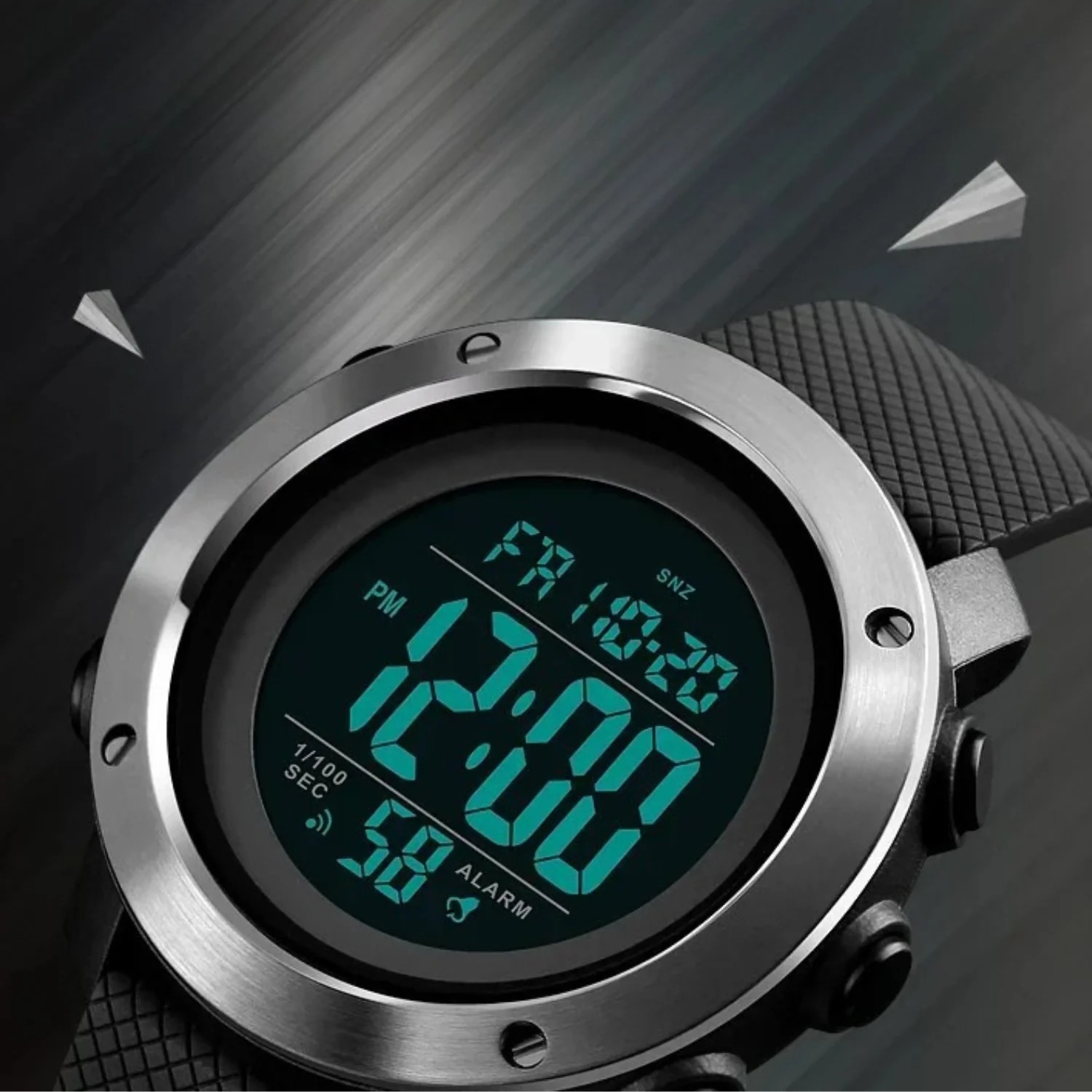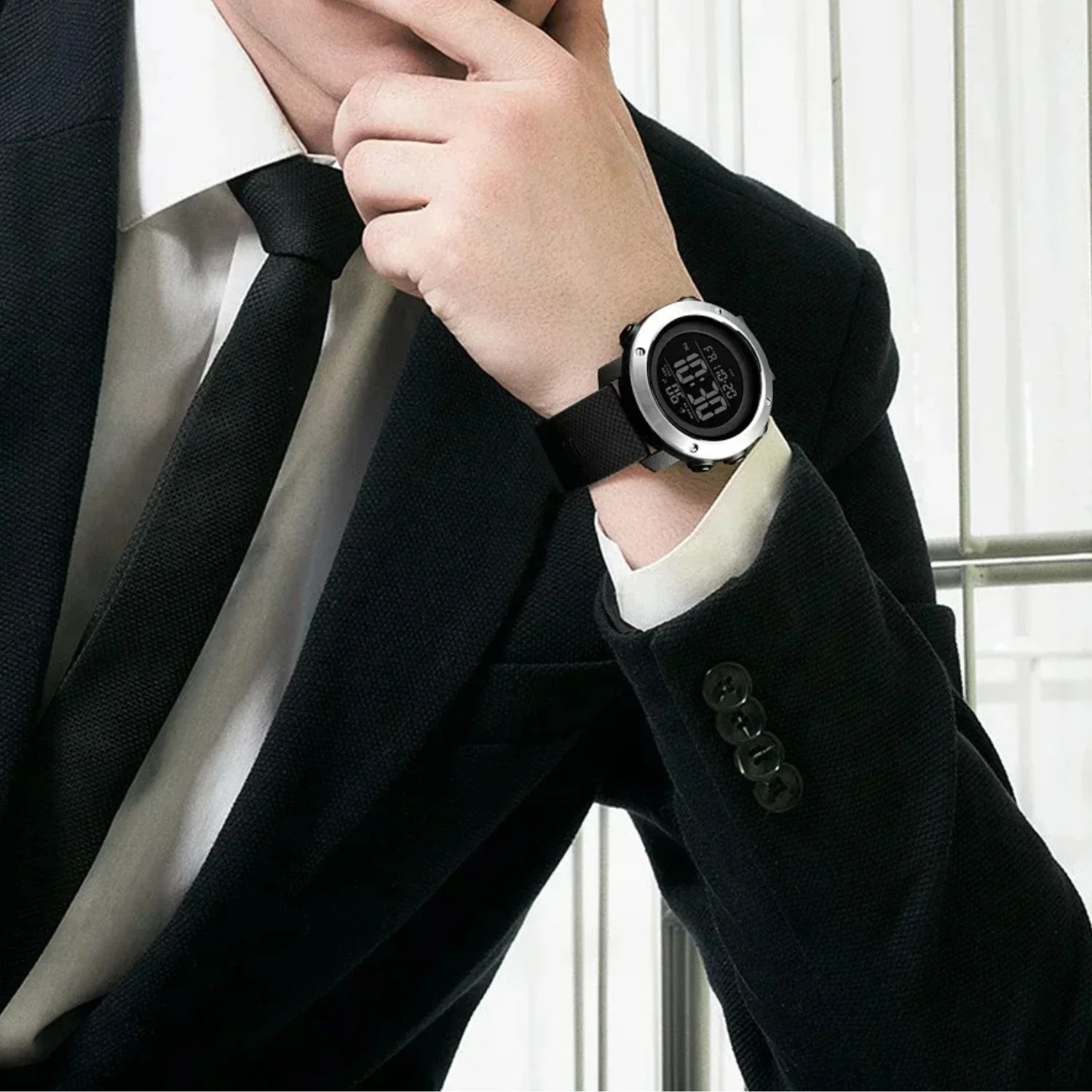 Men’s Digital Watch – Round Stainless Steel Case, 46mm Display, Stopwatch, Chronograph, Alarm, Water Resistant