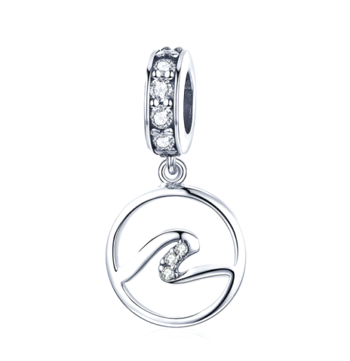 Ocean Wave Medallion Crystal Dangle Charm 925 Sterling Silver
