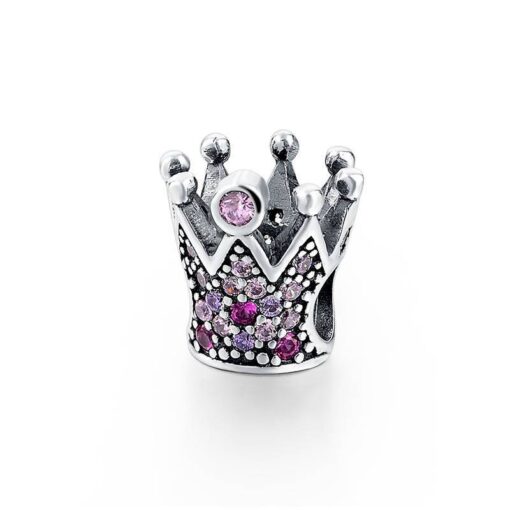 Pink Princess Cubic Zirconia Crown Charm in 925 Sterling Silver