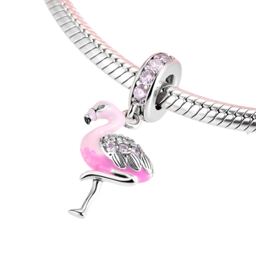 Tropical Paradise Pink Flamingo Dangle Charm 925 Sterling Silver
